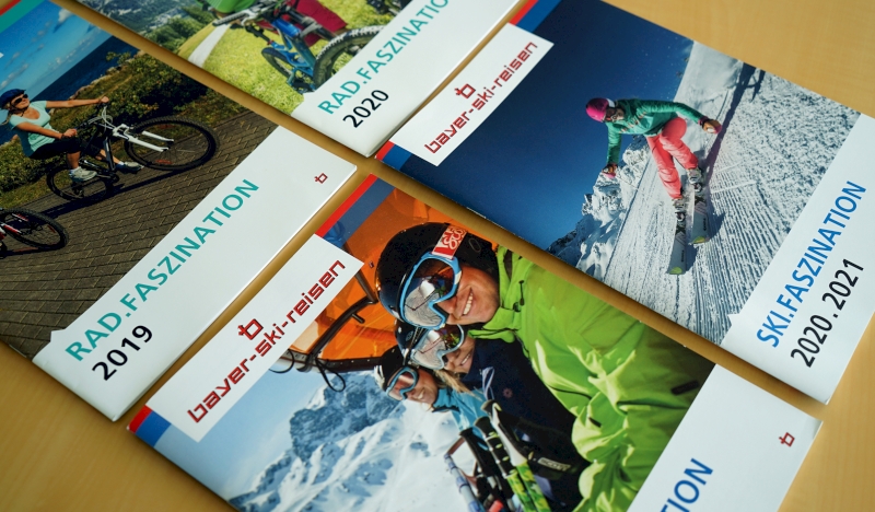 Bayer Reisen bietet jedes Jahr ein buntes Programm an Ski- und Radreisen an. Das Design und die Umsetzung kommt von der le ROUX Agentur, die Herstellung durch die le ROUX Druckerei und die Digitalisierung ergänzt die le ROUX Digital. Eine runde Sache!
